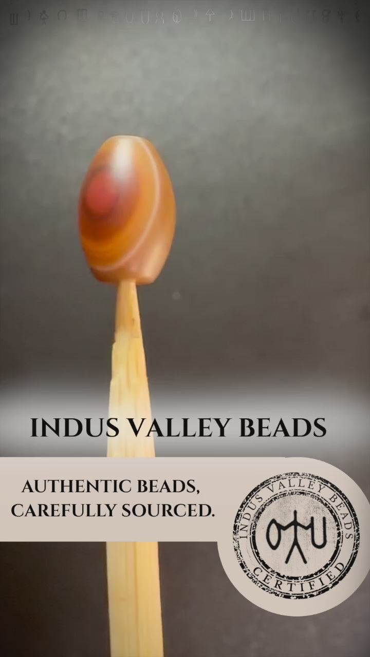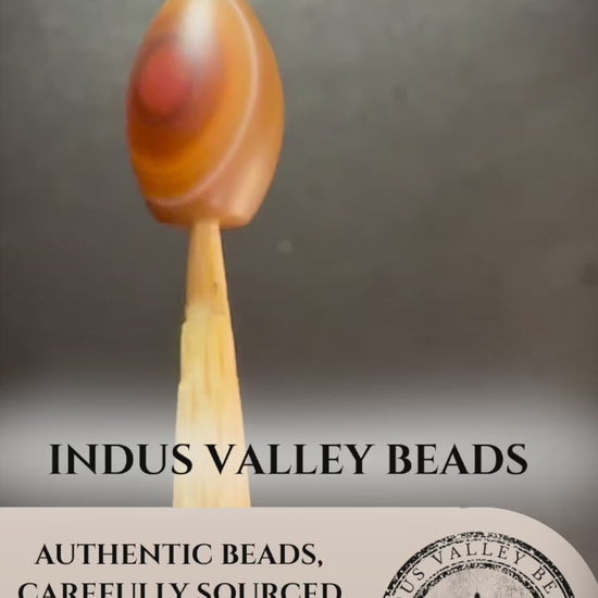 This banded agate bead has a unique eye-like pattern and comes from the Gandhara period in the Swat Valley (ancient Uddiyana). Its natural bands create a striking design, showing the skill of ancient bead makers. A rare piece for collectors, jewelry makers, or anyone interested in ancient gemstones. In excellent condition for the age. Comes strung on an adjustable black nylon cord.